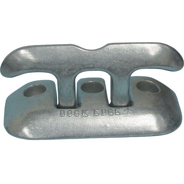 Where safety is a concern this cleat folds down to a low profile base and conveniently flips up for easy use. All surfaces are smooth and rounded. Made from marine grade aluminum and white polyester powder coated. Use on small runaboats or personal watercraft. Cast aluminum cleats are sand blasted to give a clean grey matte finish. Each cleat is designed with an extra wide footprint for added strength.